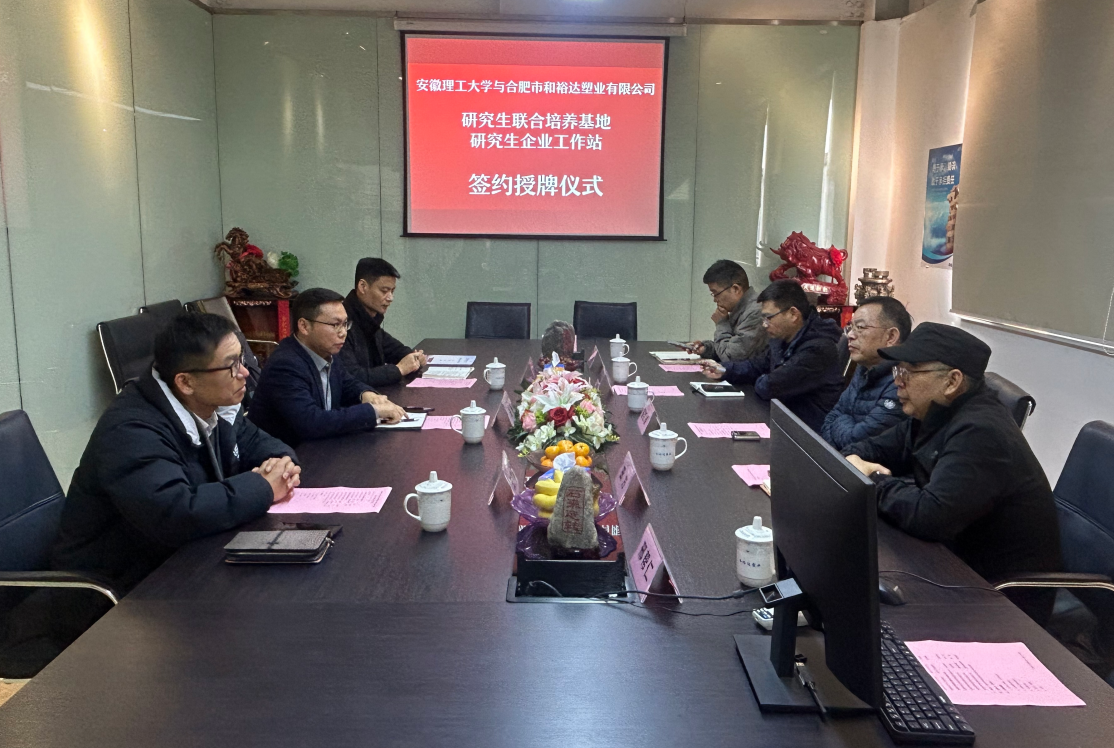 2025年11月20日上午,合肥市和裕達(dá)塑業(yè)有限公司與安徽理工大學(xué)研究生聯(lián)合培養(yǎng)基地、研究生企業(yè)工作站簽約暨揭牌儀式在和裕達(dá)隆重舉行。安徽理工大學(xué)材...